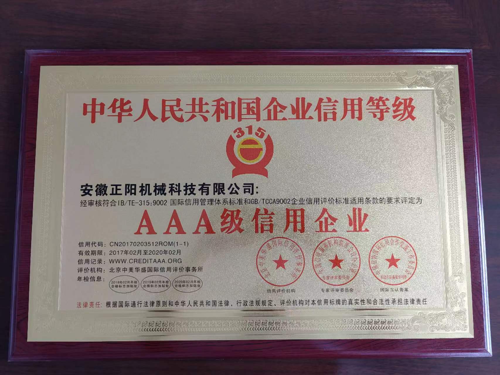 > 正陽機(jī)械 > 榮譽(yù)證書