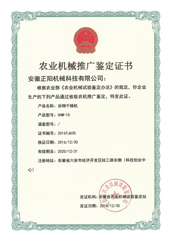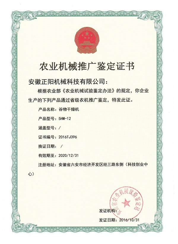 農(nóng)業(yè)機(jī)械推廣鑒定證書(shū)