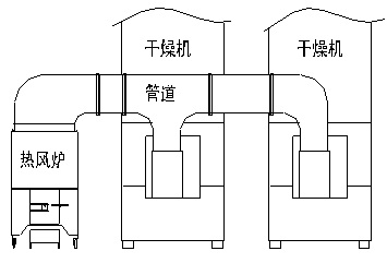 谷物干燥機(jī)熱源為熱風(fēng),其供熱系統(tǒng)為熱風(fēng)爐(如配蒸汽鍋爐時(shí)需在進(jìn)風(fēng)口處安裝換熱器,但須滿足谷物干燥機(jī)熱風(fēng)需求),一般情況下一臺(tái)熱風(fēng)爐可供1~3臺(tái)谷物干燥機(jī)使用(詳見熱風(fēng)爐配置)。
